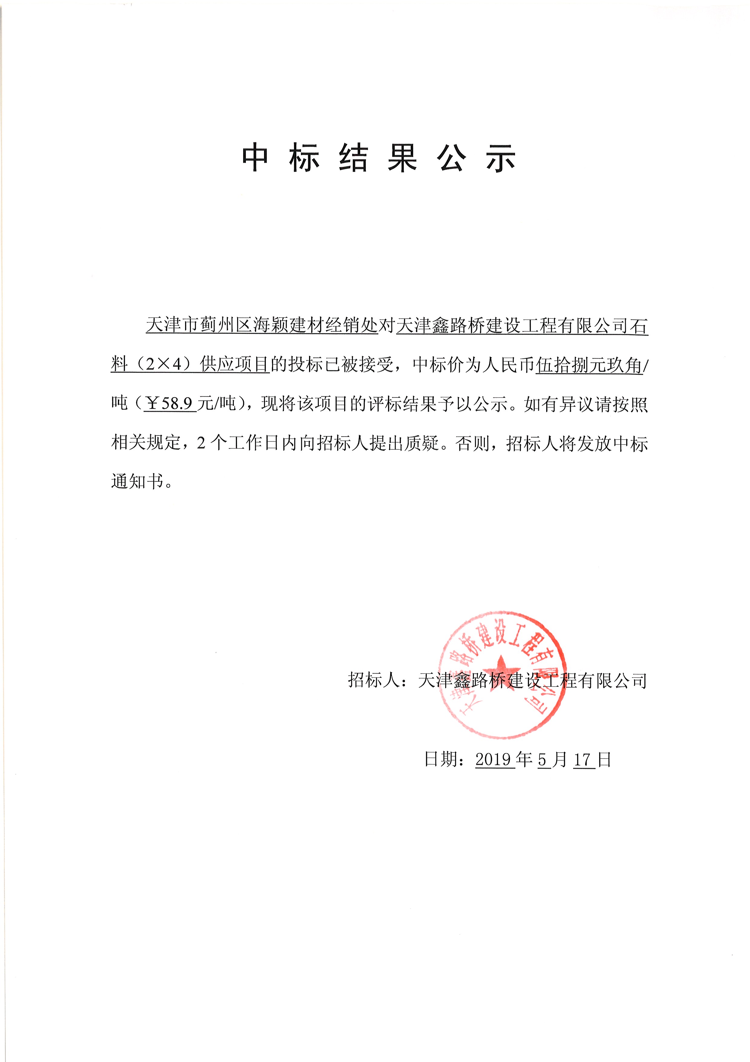 石料中标公示1